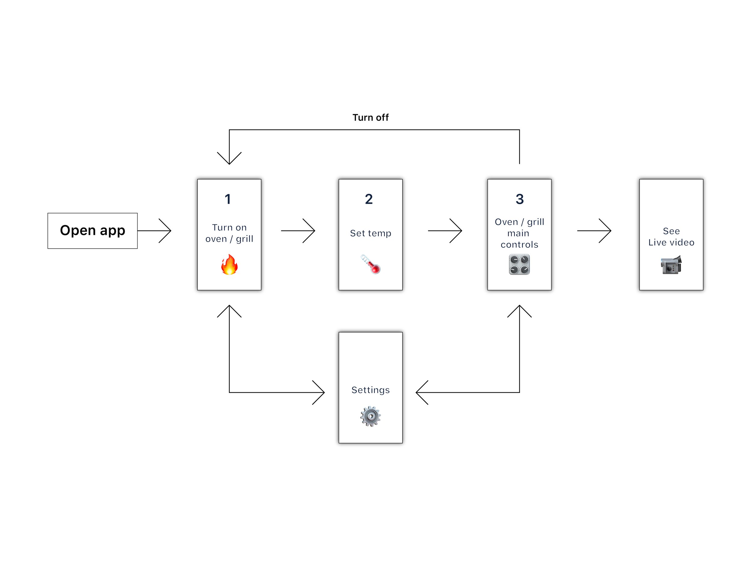 The app should “work”. Your design must get to a point where engineers could start putting together an MVP. It should be able to support any reasonable actions an oven user might want (eg. “I forgot my kids at school, I need to turn the oven off right now” or “this roast needs 10 more minutes”).